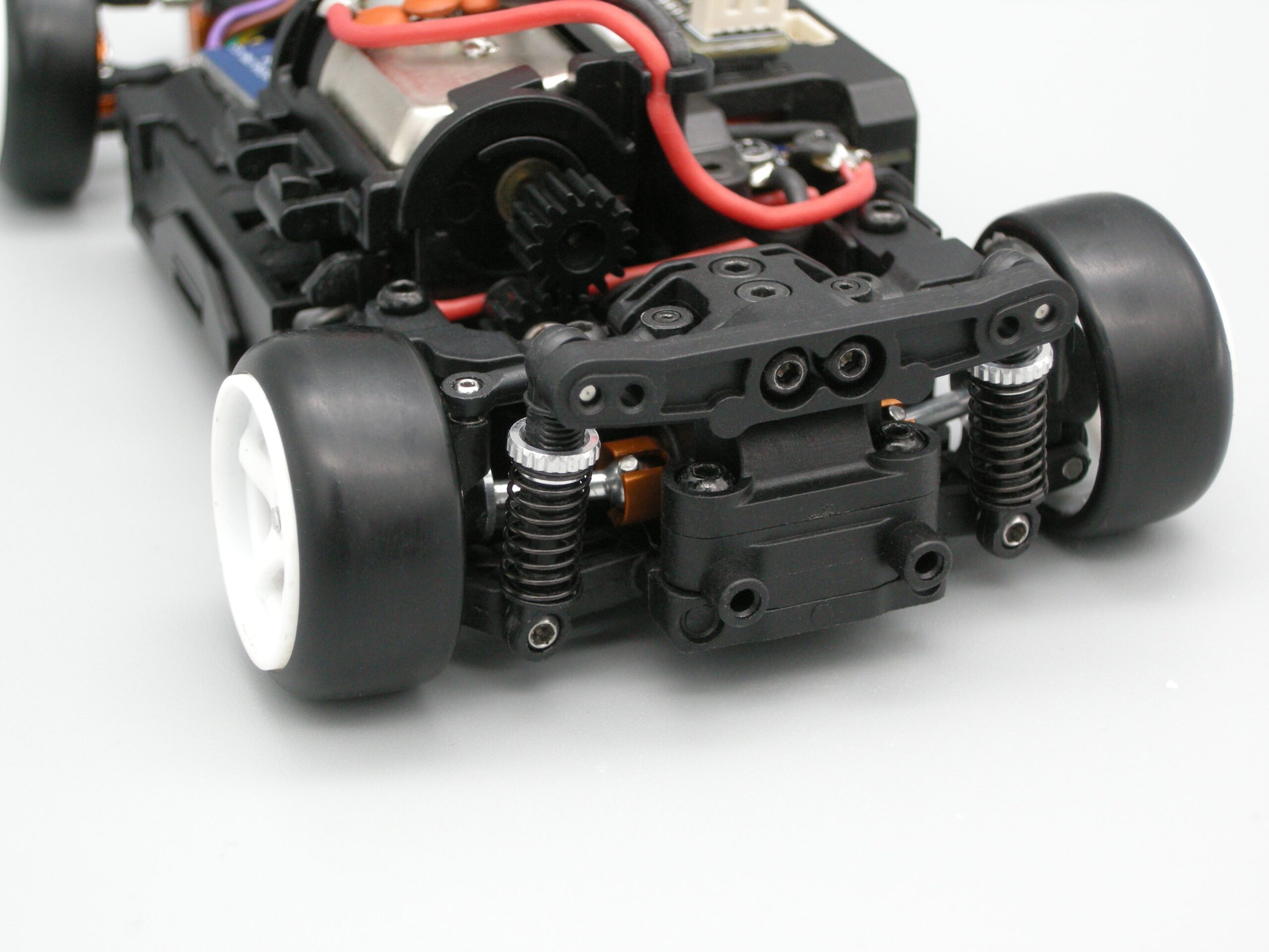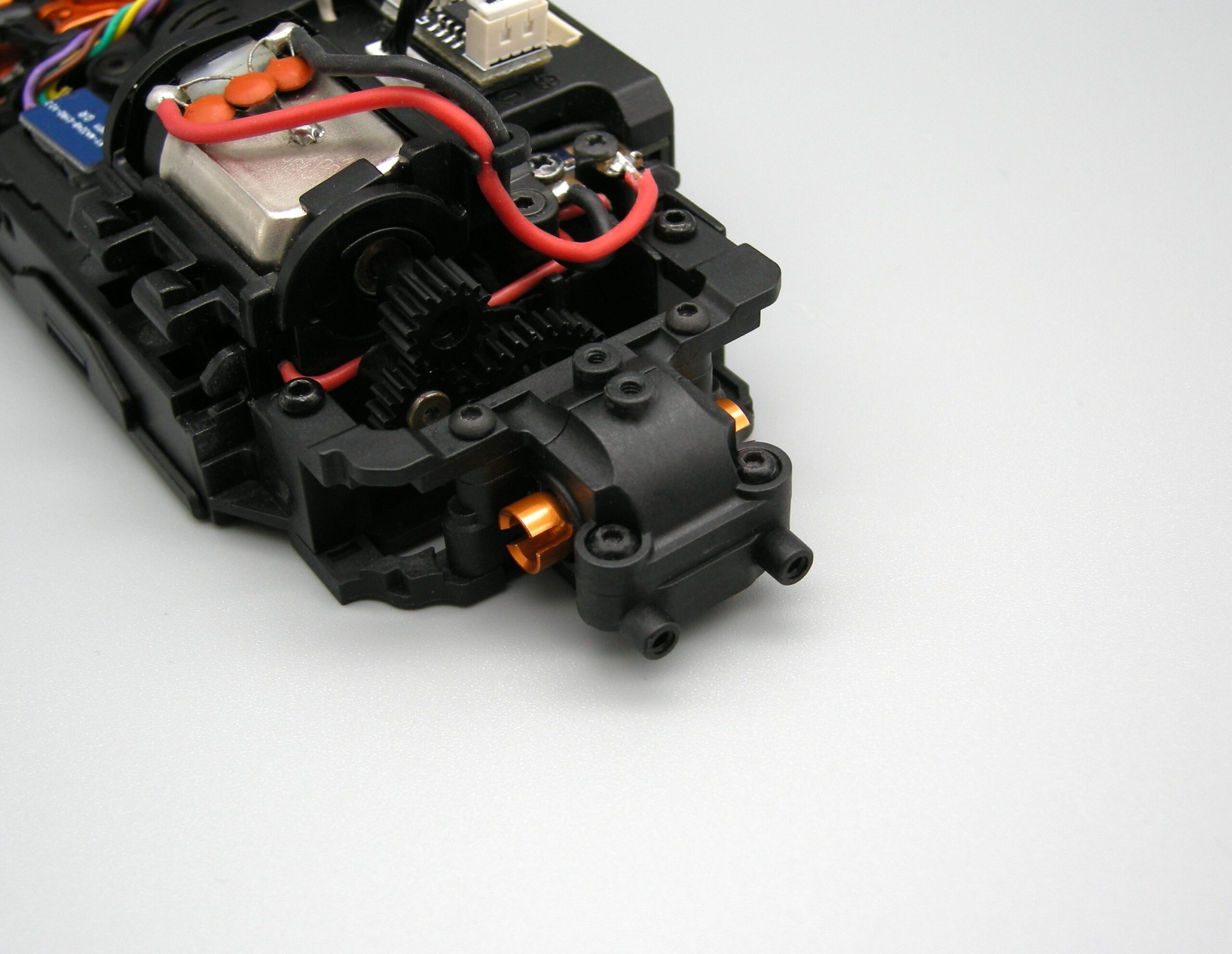 MRDのイメージカラーのオレンジアルマイトがシャシーにアクセントを加える。